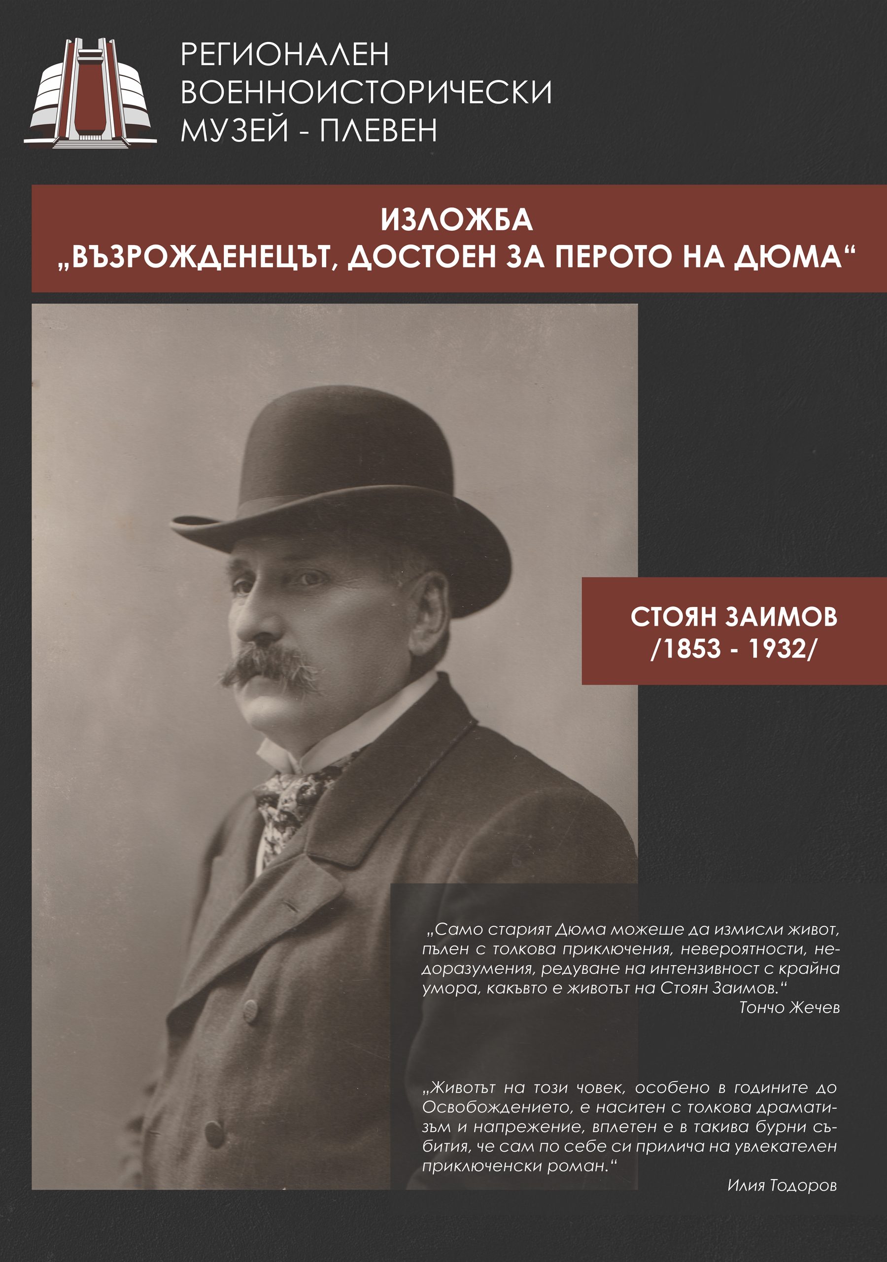 Изложбата „ВЪЗРОЖДЕНЕЦЪТ ДОСТОЕН ЗА ПЕРОТО НА ДЮМА“ е изготвена през 2023 г. по повод 170 години от рождението на Стоян Заимов.