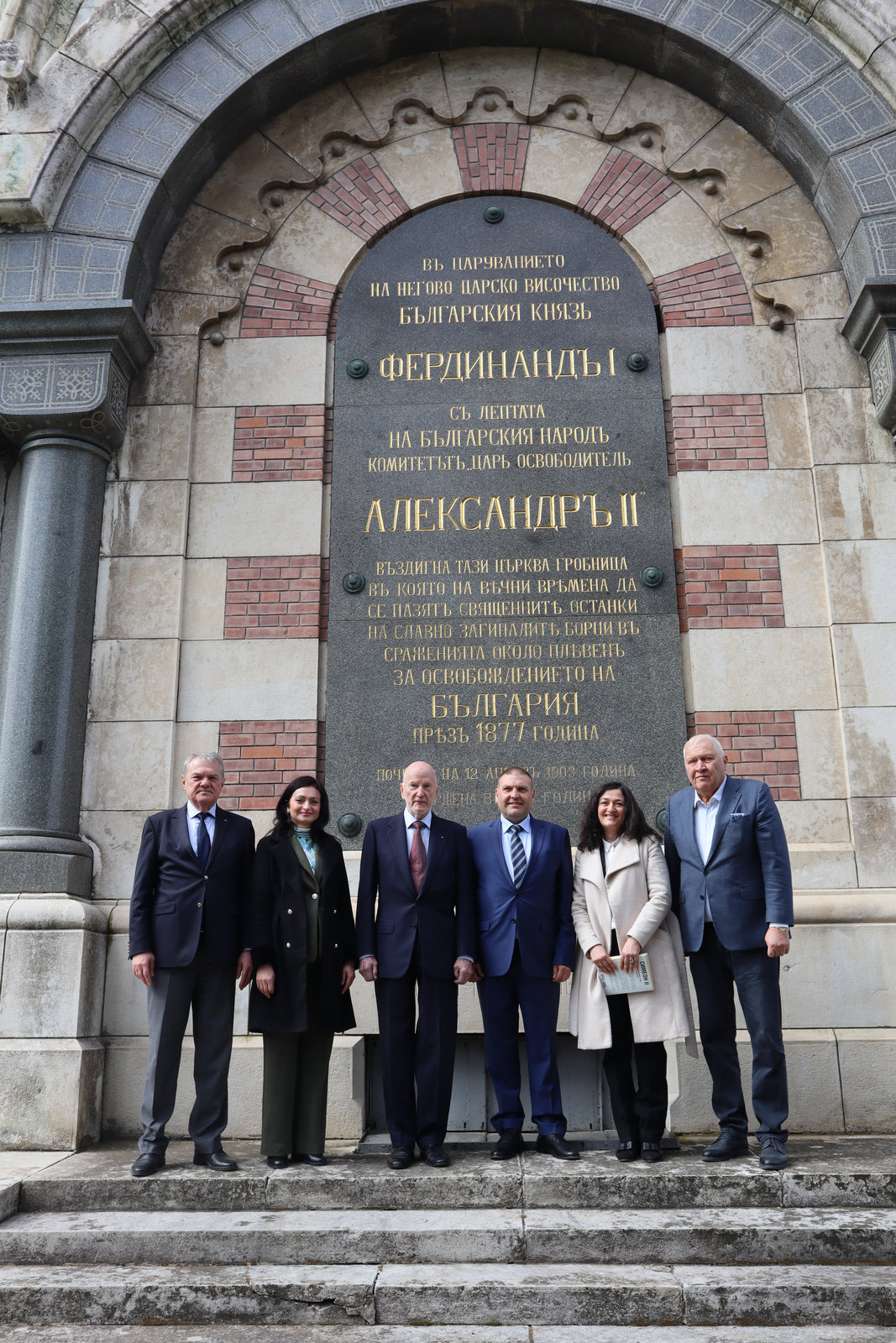Официалната делегация бе посрещната от директора на Регионалния военноисторически музей – Плевен г-жа Нели Станева. В знак на почит към загиналите герои гостите поднесоха цветя пред вечния огън и се поклониха пред възпоменателната плоча на Негово Царско Височество Българския Княз Фердинанд I. На 10 декември 1899 г. той е провъзгласен за върховен покровител и почетен председател на Комитета „Цар Освободител Александър II“, който поставя началото на изграждането на първите мемориални музеи в България в периода 1903-1907 г. Днес те са неразделна част от облика на град Плевен.