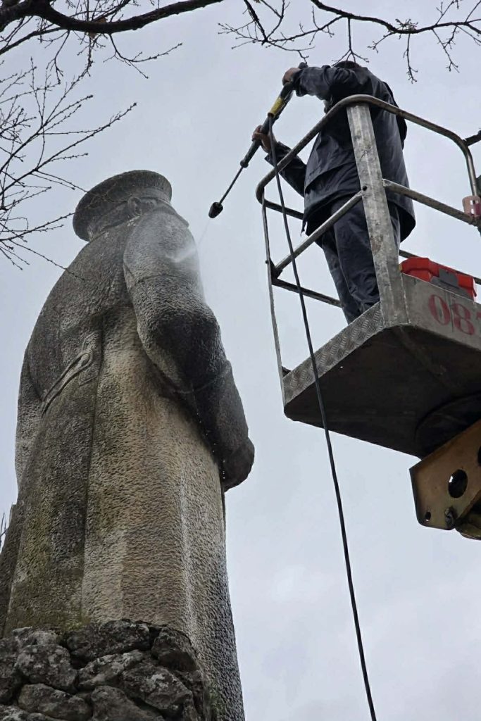Почистване на паметника на бележития руски военен инженер ген. Едуард Иванович Тотлебен.
