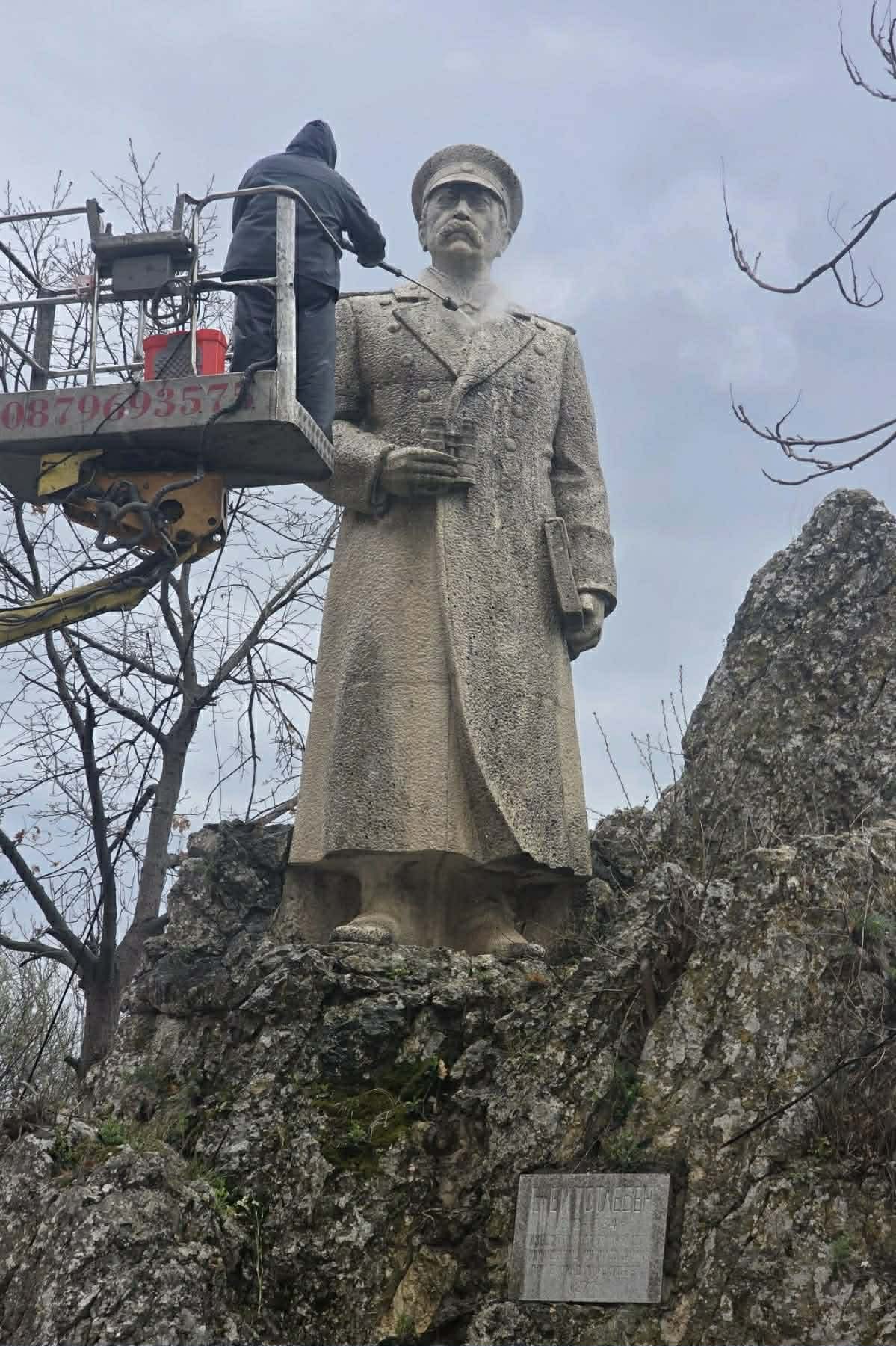 Почистване на паметника на бележития руски военен инженер ген. Едуард Иванович Тотлебен.