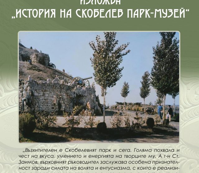 Изложбата „ИСТОРИЯ НА СКОБЕЛЕВ ПАРК-МУЗЕЙ“ представя създаването на Скобелев парк. С оригинални снимки и документи от фонда на музея се проследява неговото изграждане и мемориализация....
